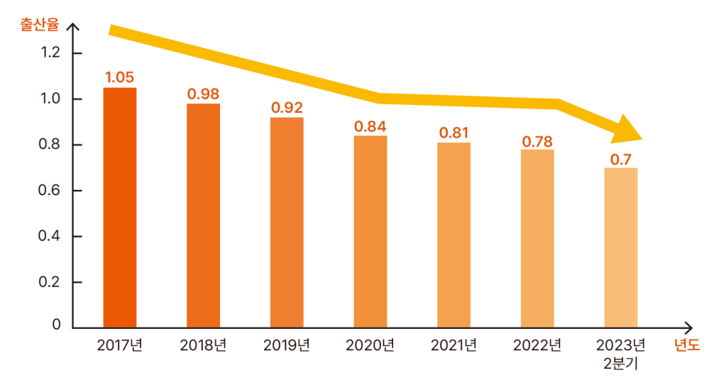 지난 3년간 대한민국의 합계출산율은 각각 0.808, 0.778, 0.721 이었어요. 출산율 저하가 계속되면 경제활동 인구 수가 줄어들고, 이것은 국민연금을 지원하는 기금 조달에 직접적인 영향을 미치게 돼요. 현재의 세대가 점차 고령화되면서 연금을 수령하는 인구는 늘어나고 있지만, 연금을 납부하는 인구는 줄어드는 구조로 인해 연금 기금이 고갈될 위험이 커지고 있는 것이 현실이에요.